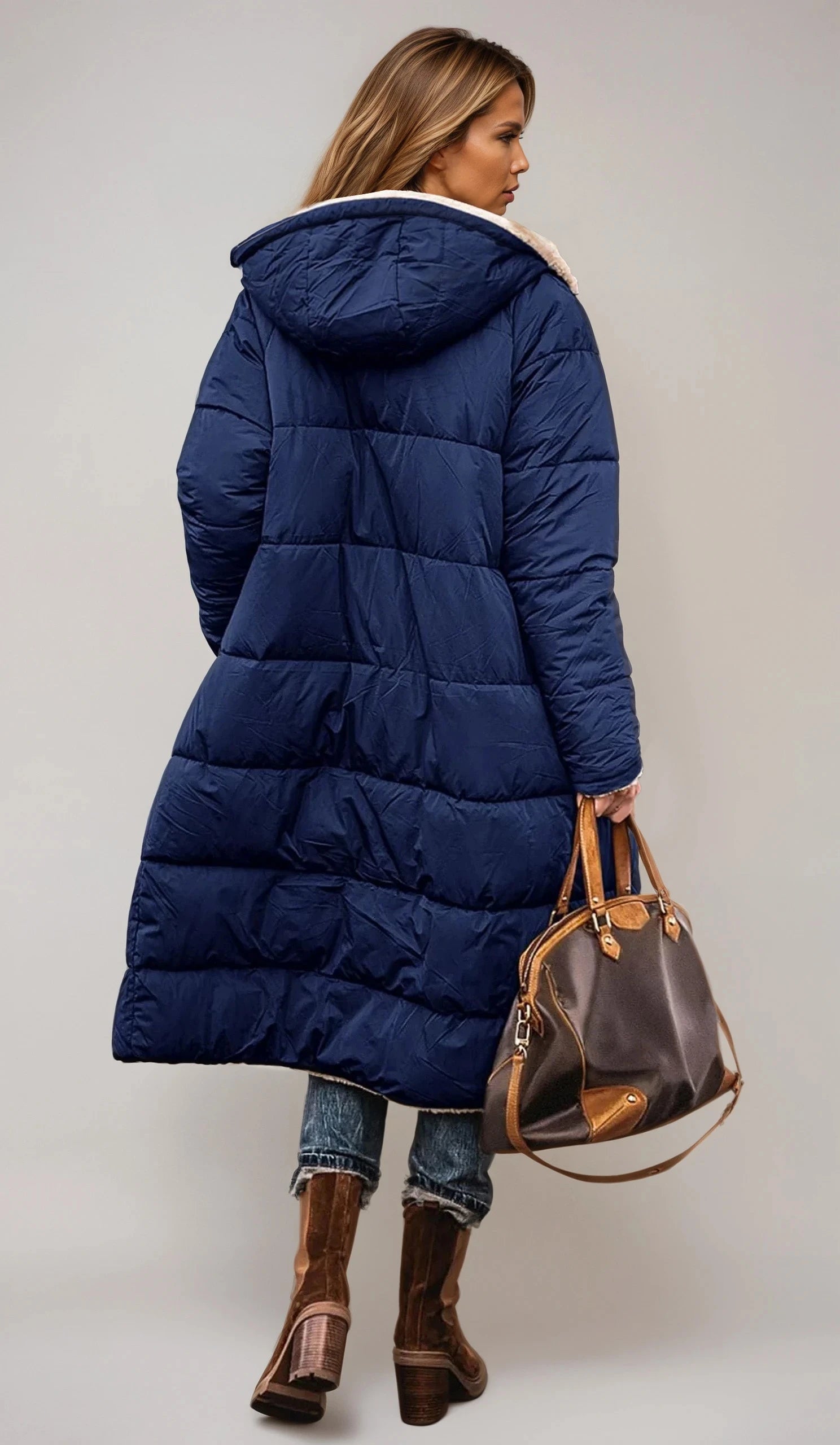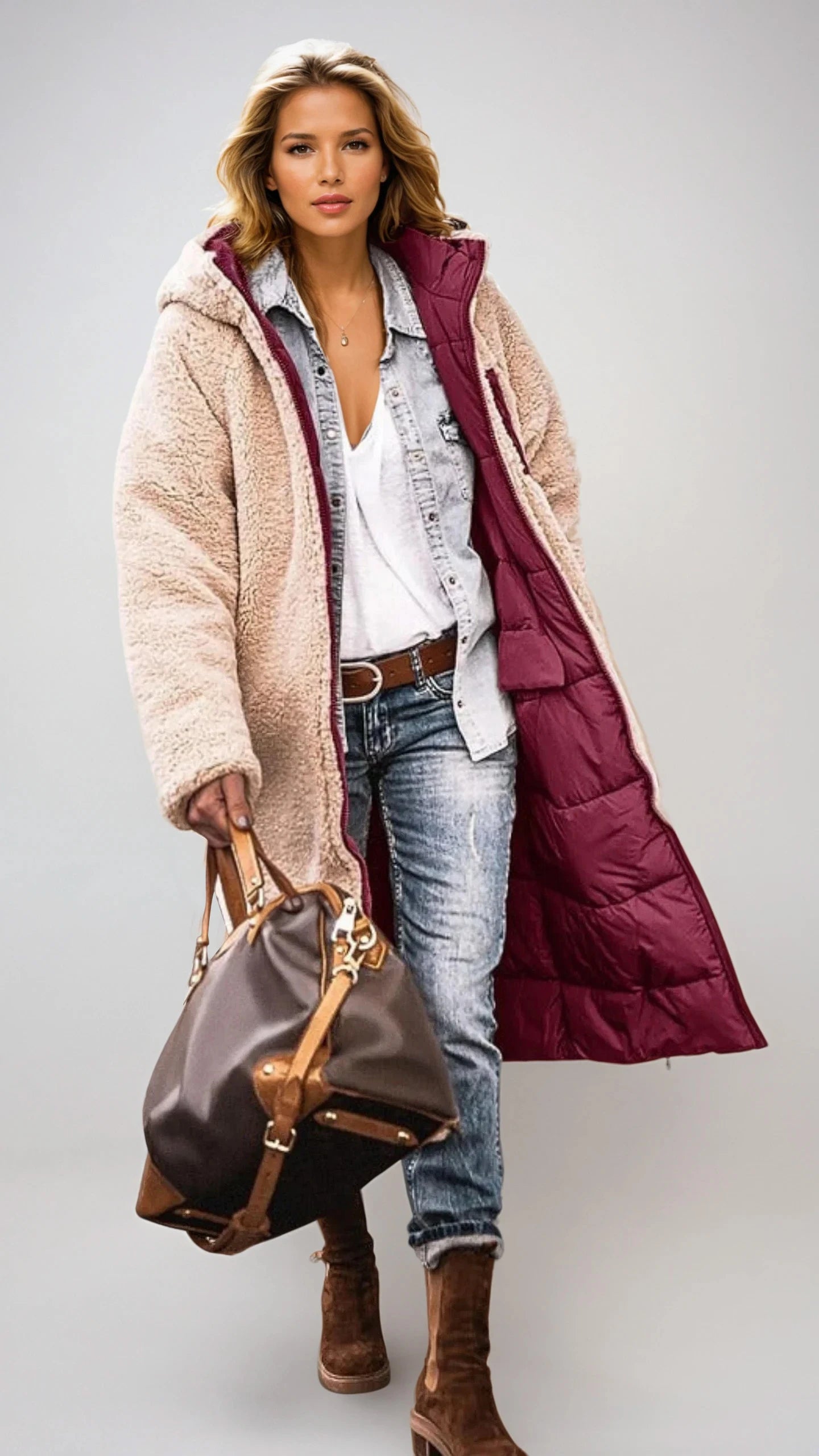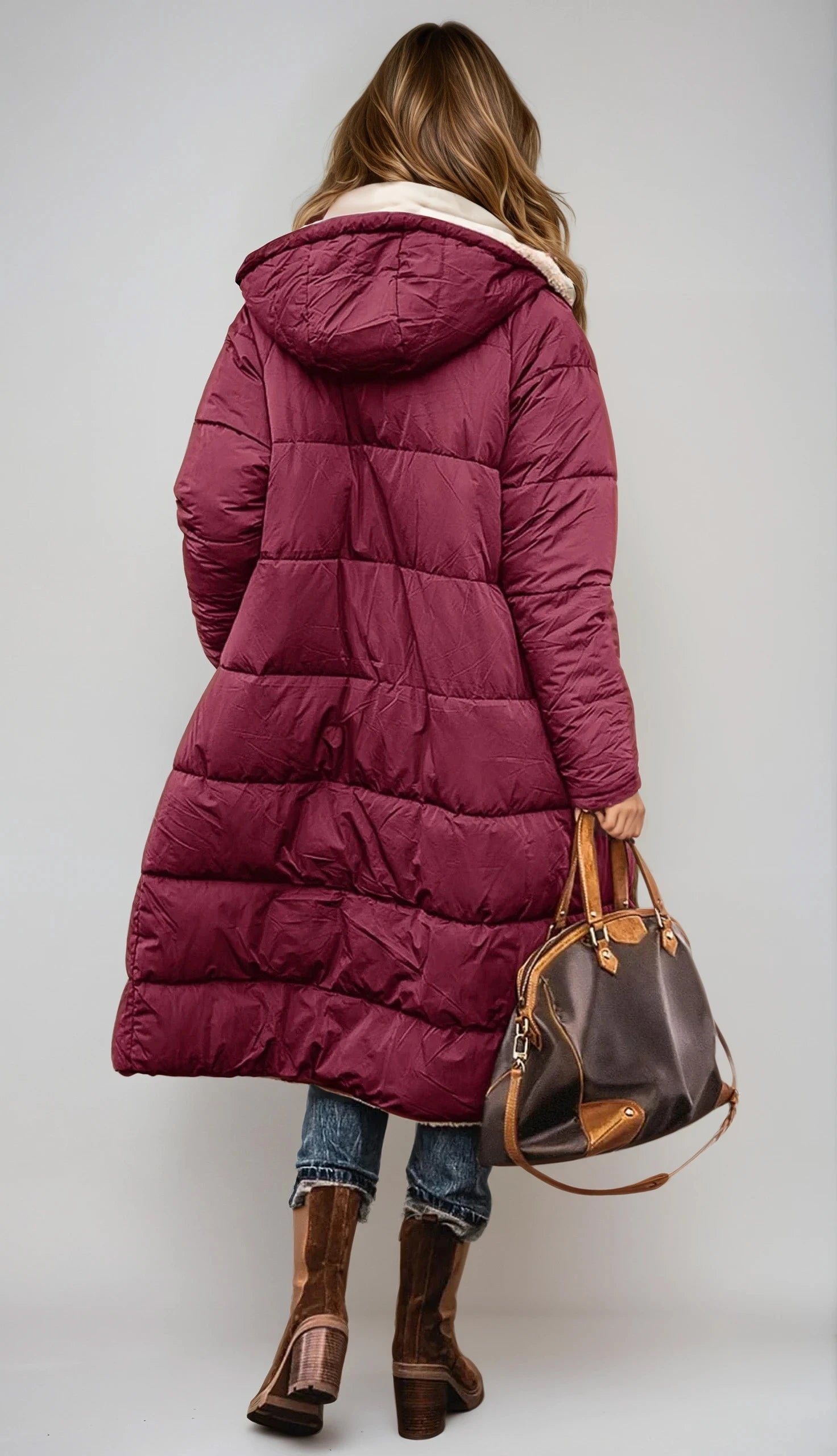 Add refinement and luxury to your winter wardrobe with the Amelia Wool Coat. Crafted from premium wool, this coat offers warmth and an elegant look. The reversible design with a quilted exterior and soft teddy lining makes it versatile—ideal for both casual and more formal occasions. The perfect statement piece for colder days.