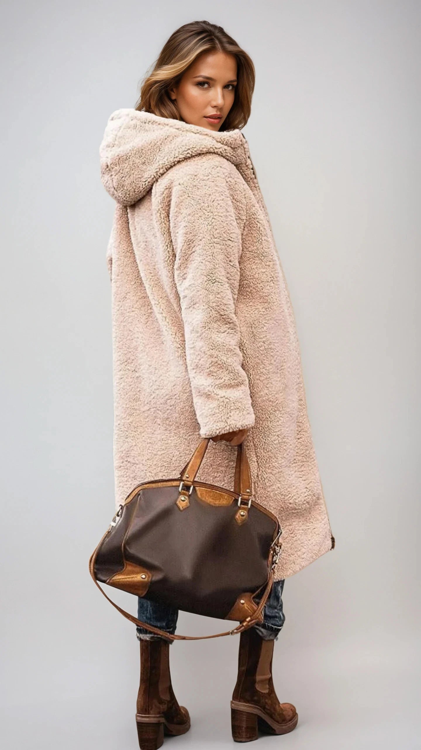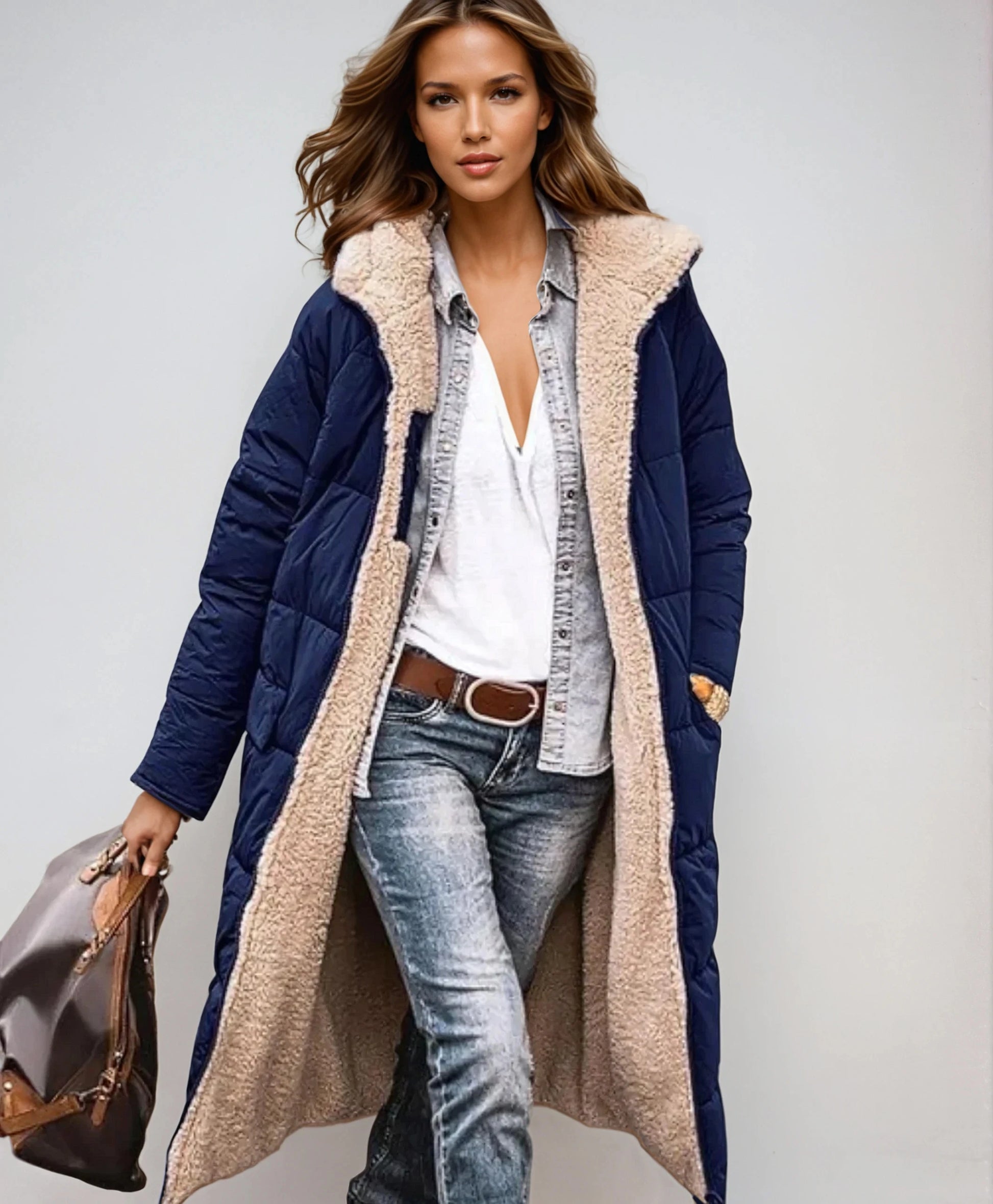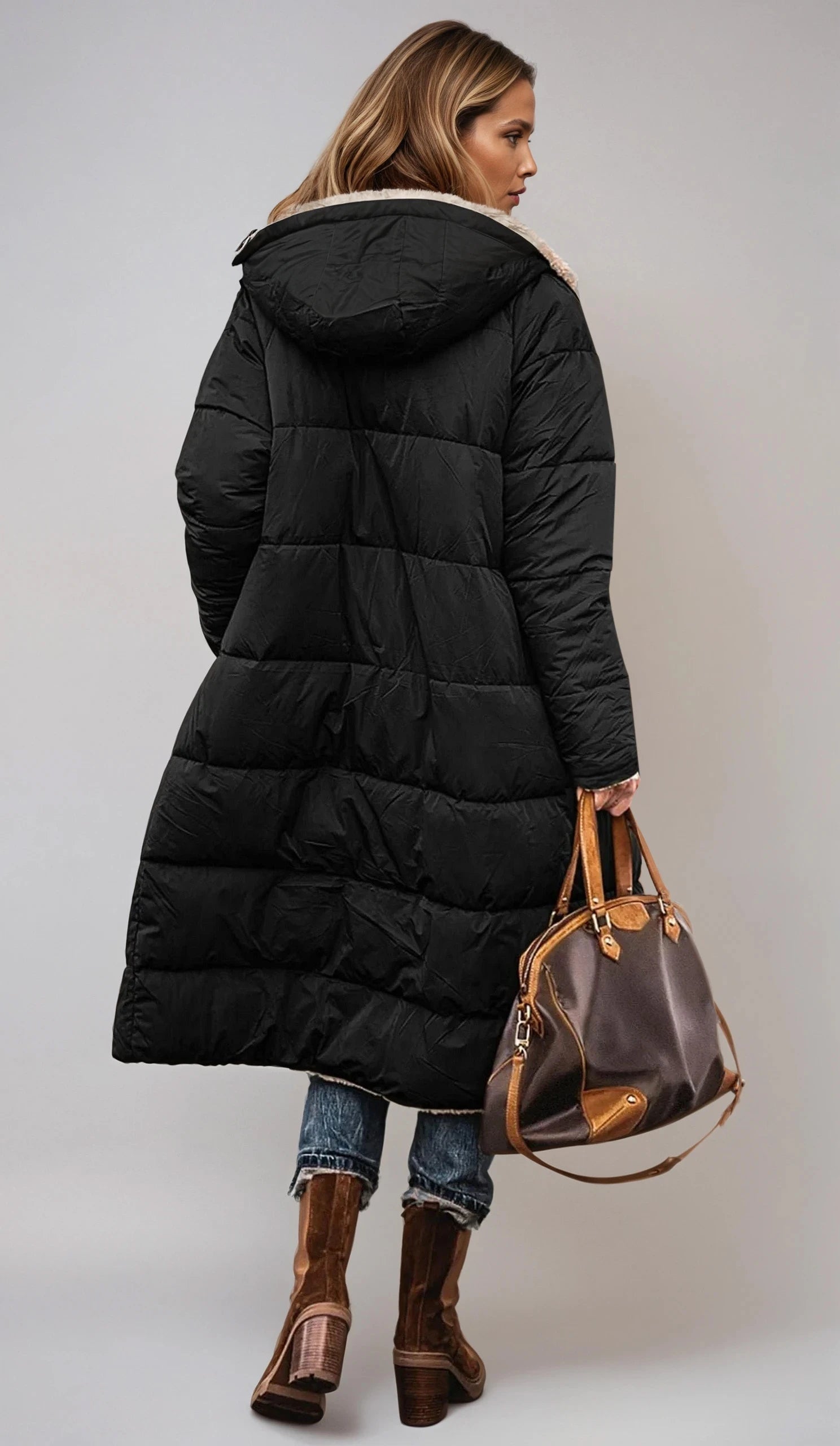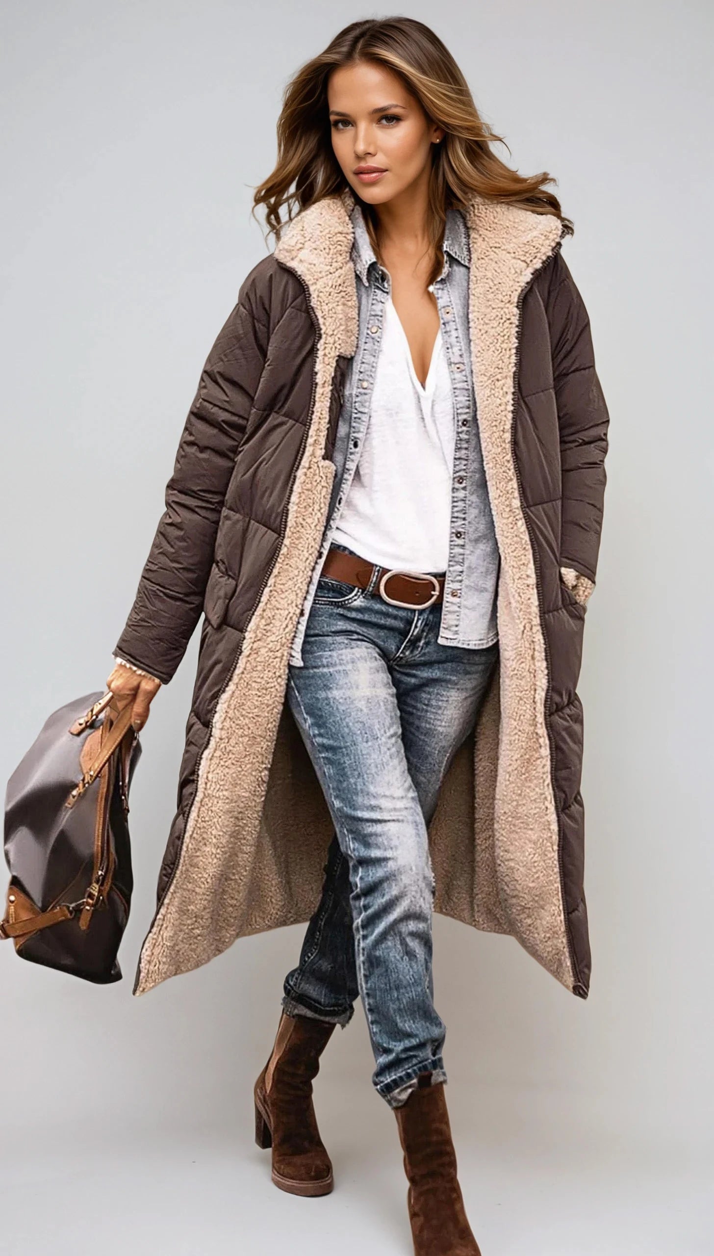 Add refinement and luxury to your winter wardrobe with the Amelia Wool Coat. Crafted from premium wool, this coat offers warmth and an elegant look. The reversible design with a quilted exterior and soft teddy lining makes it versatile—ideal for both casual and more formal occasions. The perfect statement piece for colder days.