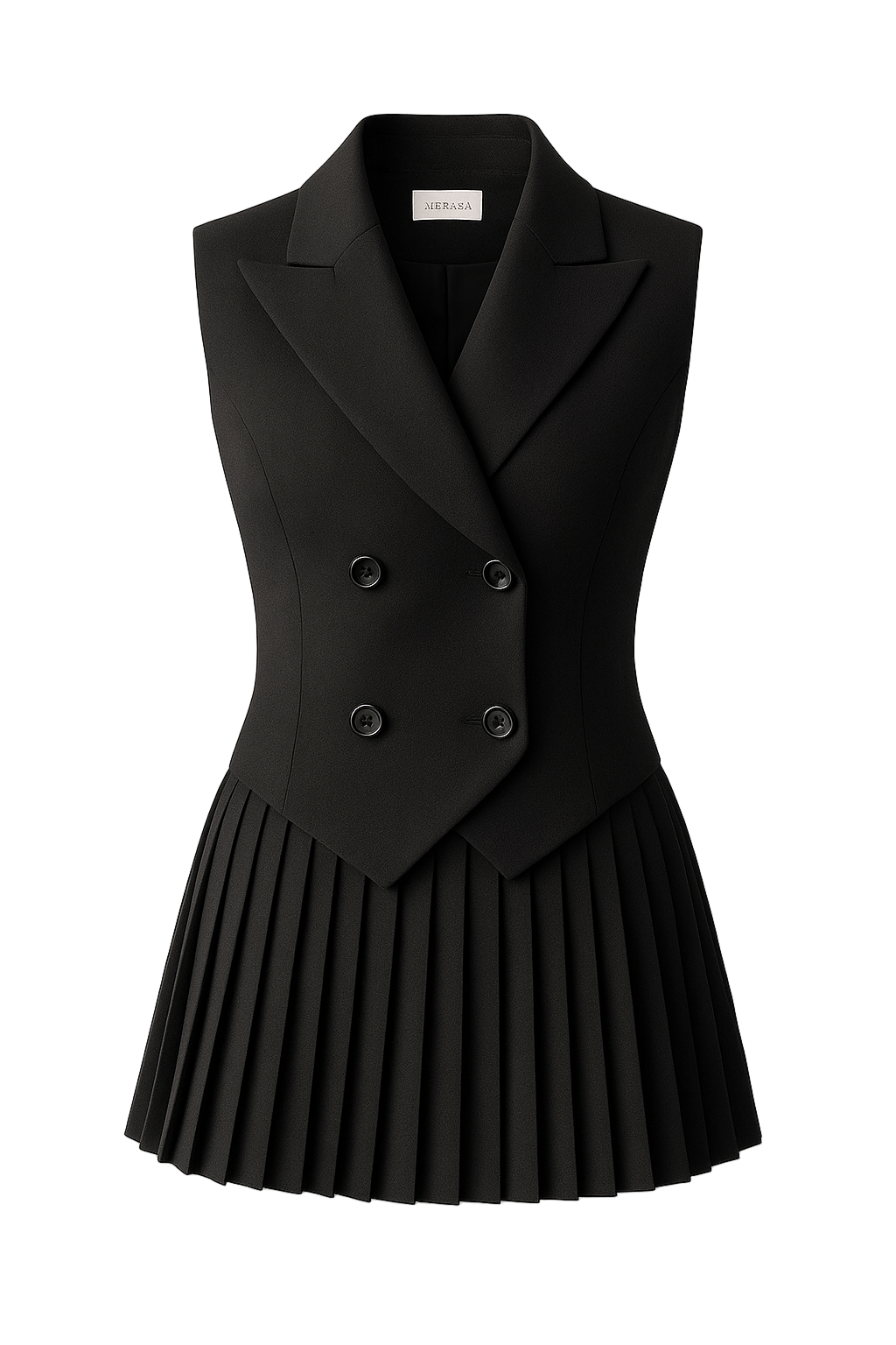 Stylish and playful in one: this outfit features an elegant vest and a pleated miniskirt. Perfect for a chic yet trendy look, suitable for both work and formal occasions. Made of soft polyester for comfort and a sleek fit.
