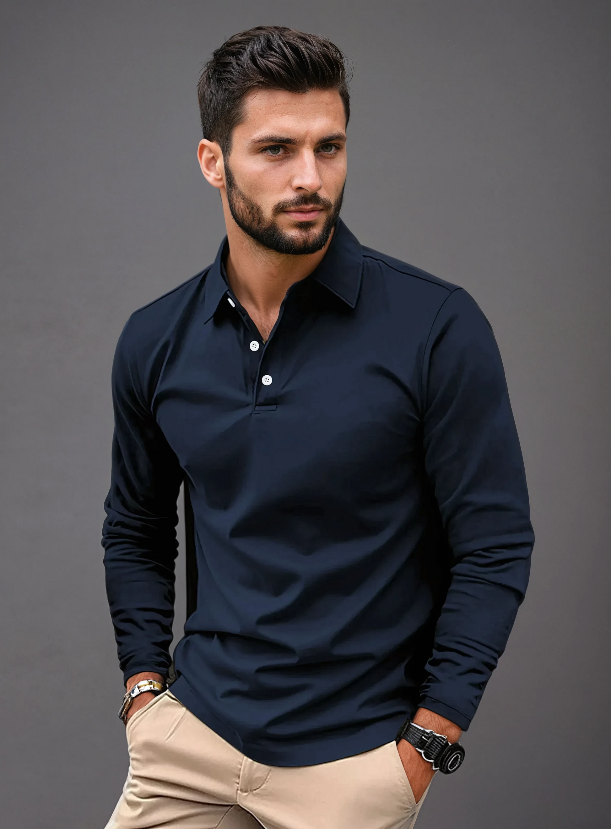 The Evan Polo Shirt is the perfect garment for any man who values both style and comfort. The breathable fabric and slim fit ensure a polished look, whether you're going for a casual look or a more formal outfit. The button-up collar and anti-wrinkle fabric make this shirt versatile and easy to pair with any outfit.