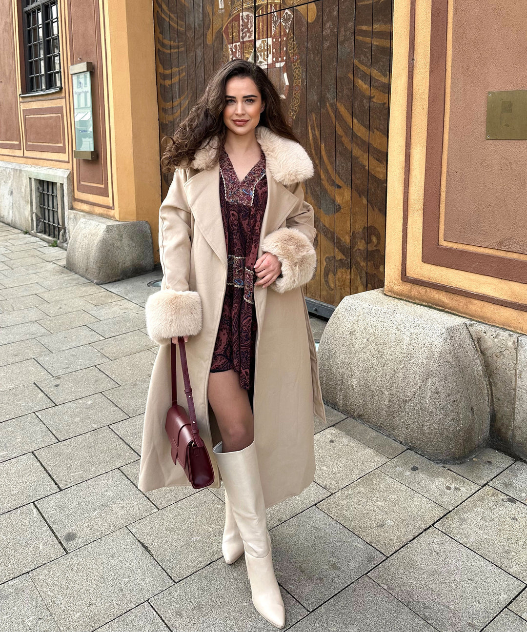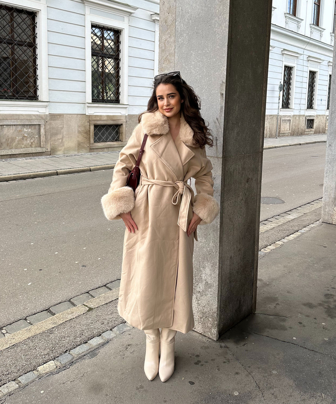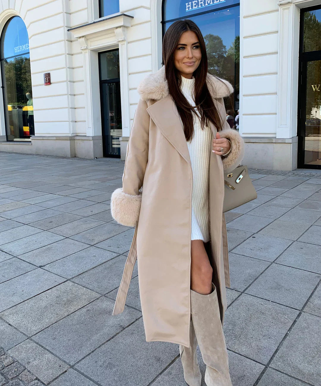 The Luna Faux Suede Coat Combines classic refinement with modern functionality, perfect for the stylish woman who appreciates a luxurious look. The combination of faux suede and soft faux fur creates a warm and elegant look, ideal for cooler days. Thanks to its minimalist design and practical details, this coat is the perfect addition to any outfit.
