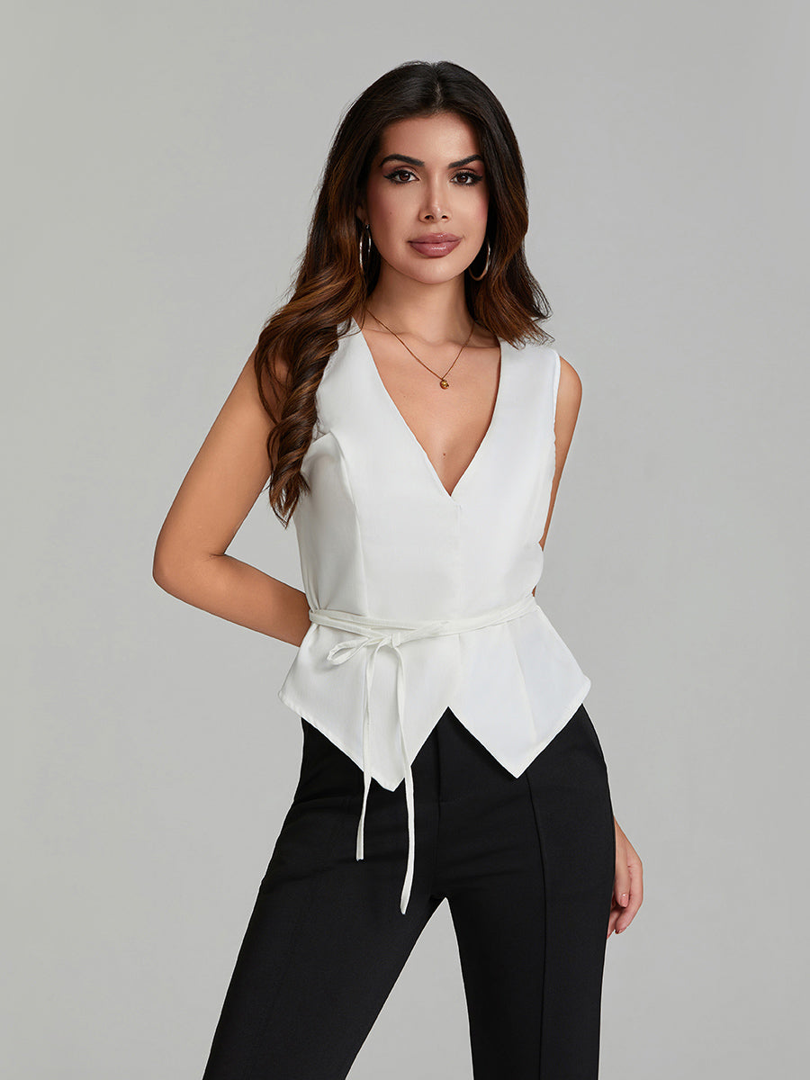 Discover timeless elegance with the Vera Waistcoat – a versatile vest that effortlessly combines style and comfort. The modern design with a deep V-neck and subtle tie closure adds a refined, feminine touch, while the regular fit ensures an elegant and contemporary look. Perfect for both casual and dressy outfits.