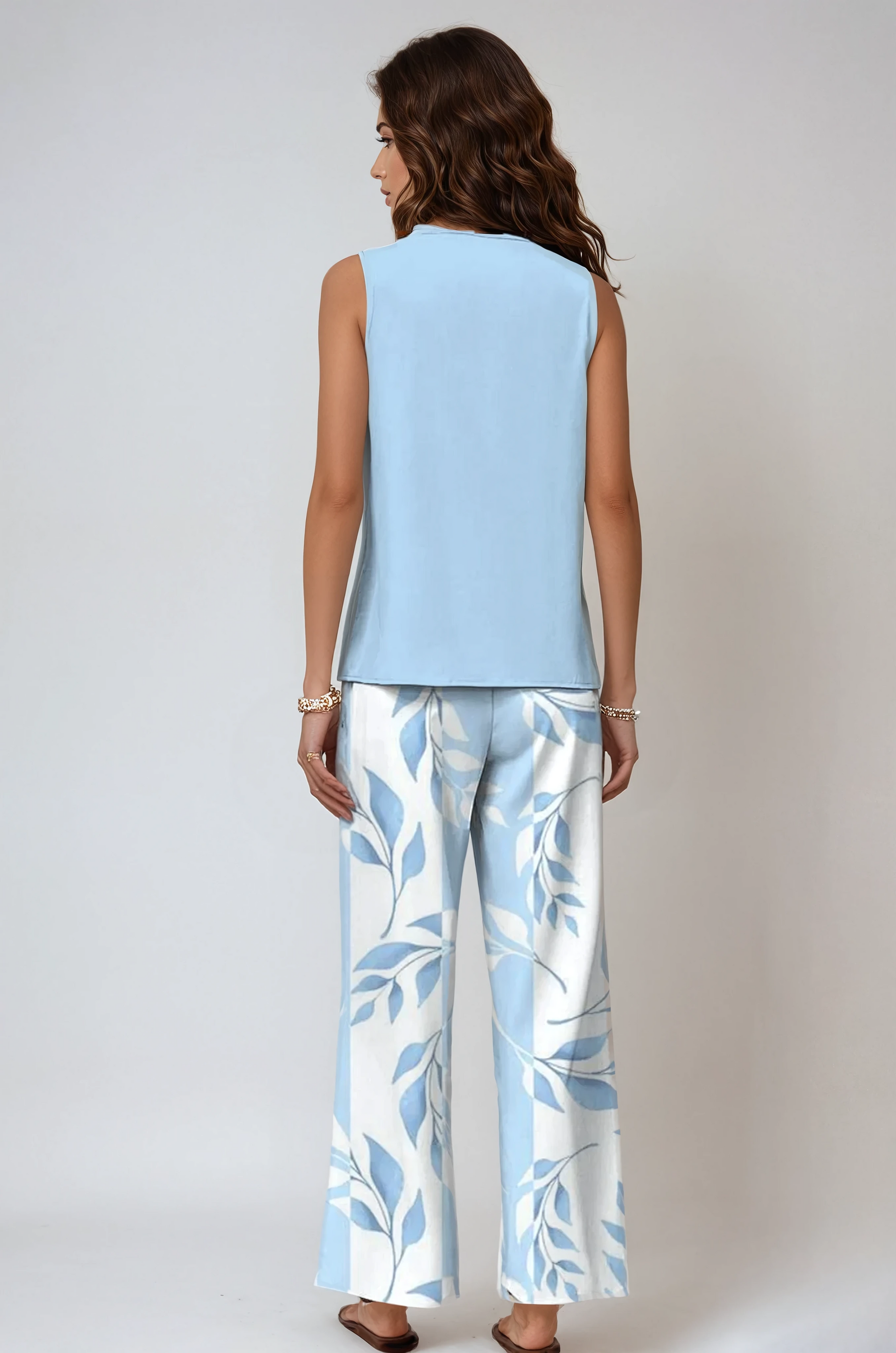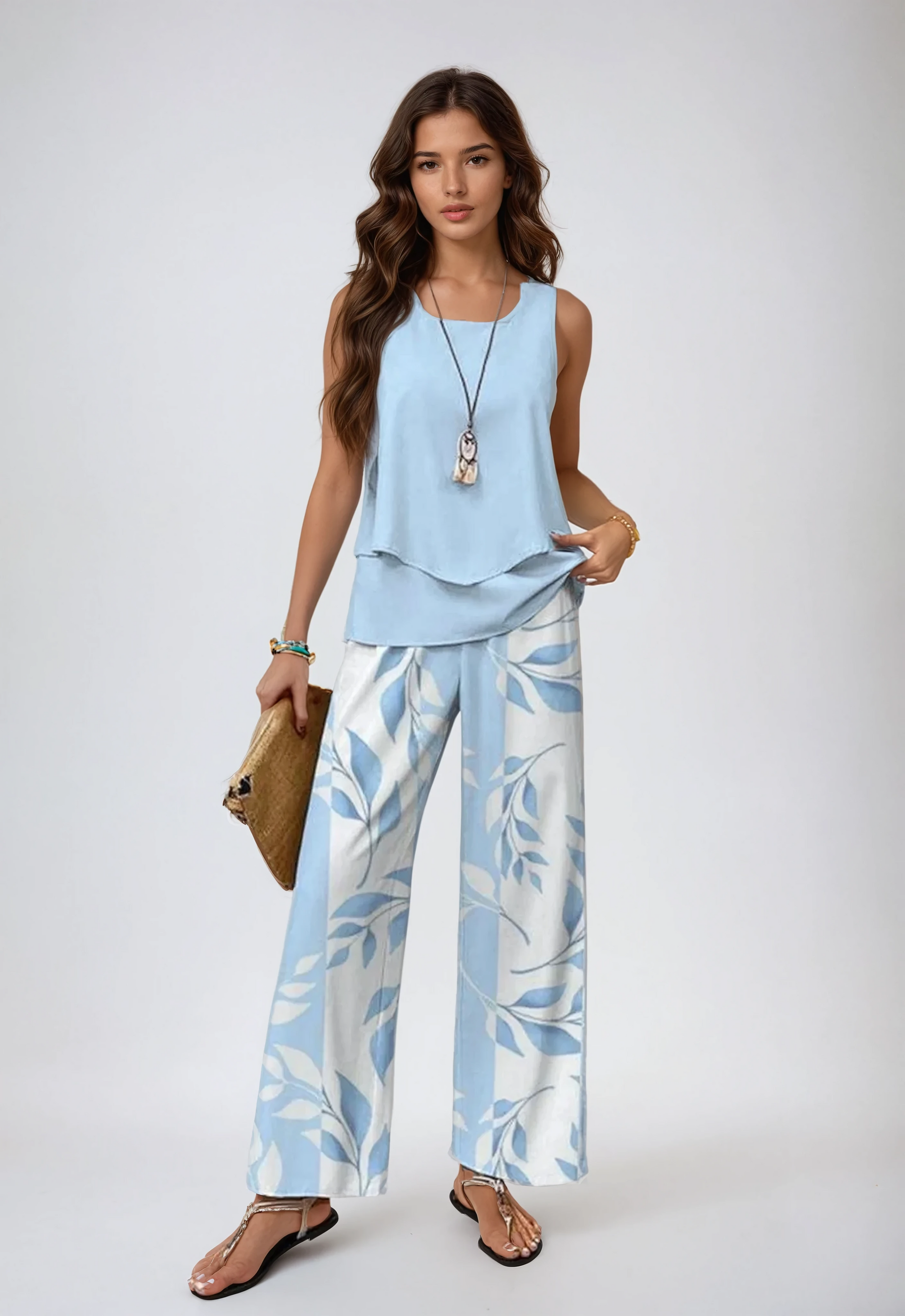 Embrace summer with the Victoria Set – a stylish two-piece suit that combines comfort and elegance. The sleeveless top with a square neckline and airy, wide-leg trousers create a modern, relaxed look. Ideal for warm days and casual occasions, with a trendy and timeless charm.